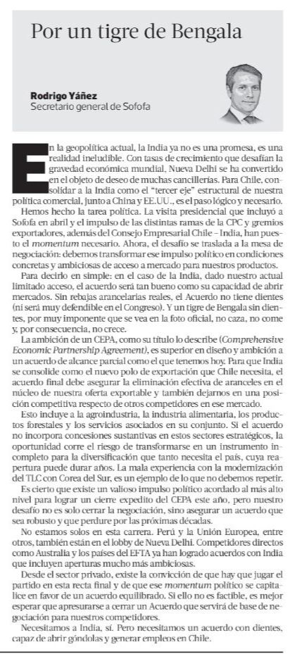 Columna del Consejero Sr. Rodrigo Yáñez en La Tercera